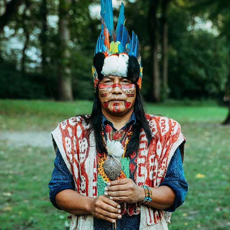 Western influencers listen to Manari Ushigua, a political and ceremonial leader and healer from the Sápara people from the Ecuadorian Amazon rainforest.